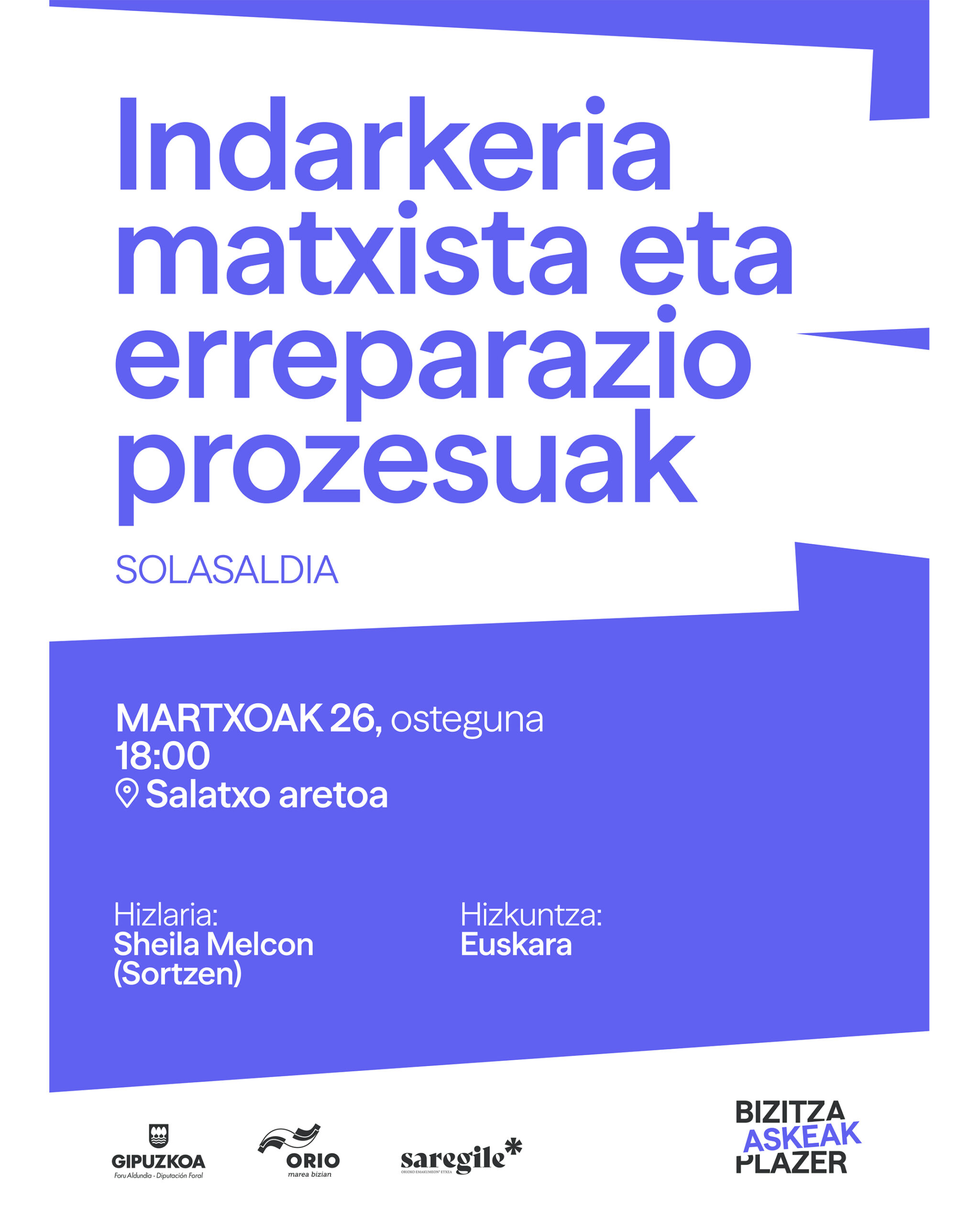 Sheila Melconek 'Indarkeria matxista eta erreparazio prozesuak' hitzaldia emango du martxoaren 26an