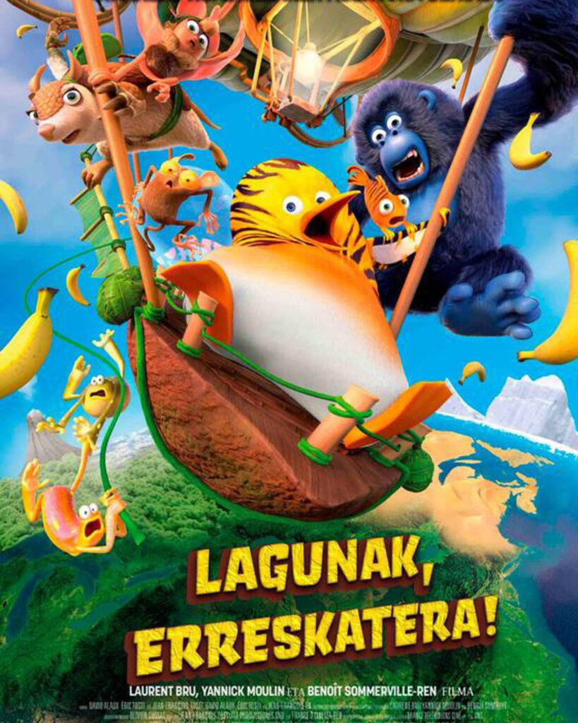 Proiektatuko den filma 2023ko Lagunak erreskatera ekoizpen frantziarra da. Zinema Euskaraz programaren bidez itzuli da euskarara, eta oihanean bizi den animalia kuadrila baten abenturak kontatzen ditu, komedia gakoan. Superbilau misteriotsu batek urarekin kontaktuan eztanda egiten duen apar arrosa toxiko batekin estali du oihana, eta lagunak erreskatera irtengo dira, eurite sasoitik hilabete baino gutxiago falta denean, antidoto bat lortzeko.