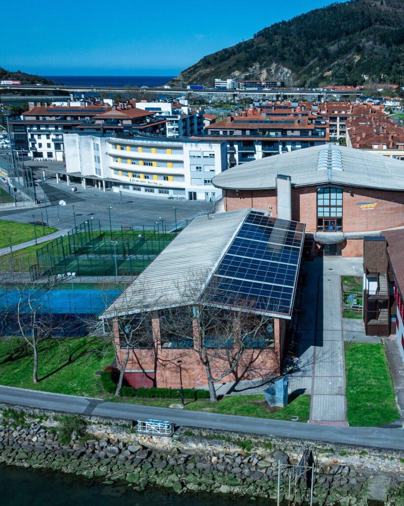 - Energia gehien kontsumitzen duen eraikin publikoa izanik, neurri ugari hartu dira kiroldegian: bero-berreskuragailu bat eta eguzki-plaka termikoak instalatu dira; LED-argiak ezarri dira; hezetasuna kentzeko makina eta klimatizagailua eta horien kontrol-sistema berritu dira; eta ur beroa ekoizten laguntzeko aerotermia-sistema instalatu da.